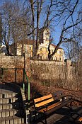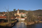 Mirovice kostel sv. Klimenta přes řeku Skalici (2020) |