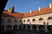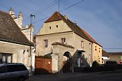 Mirovice renesanční štít budovy v jižní části (2020) |