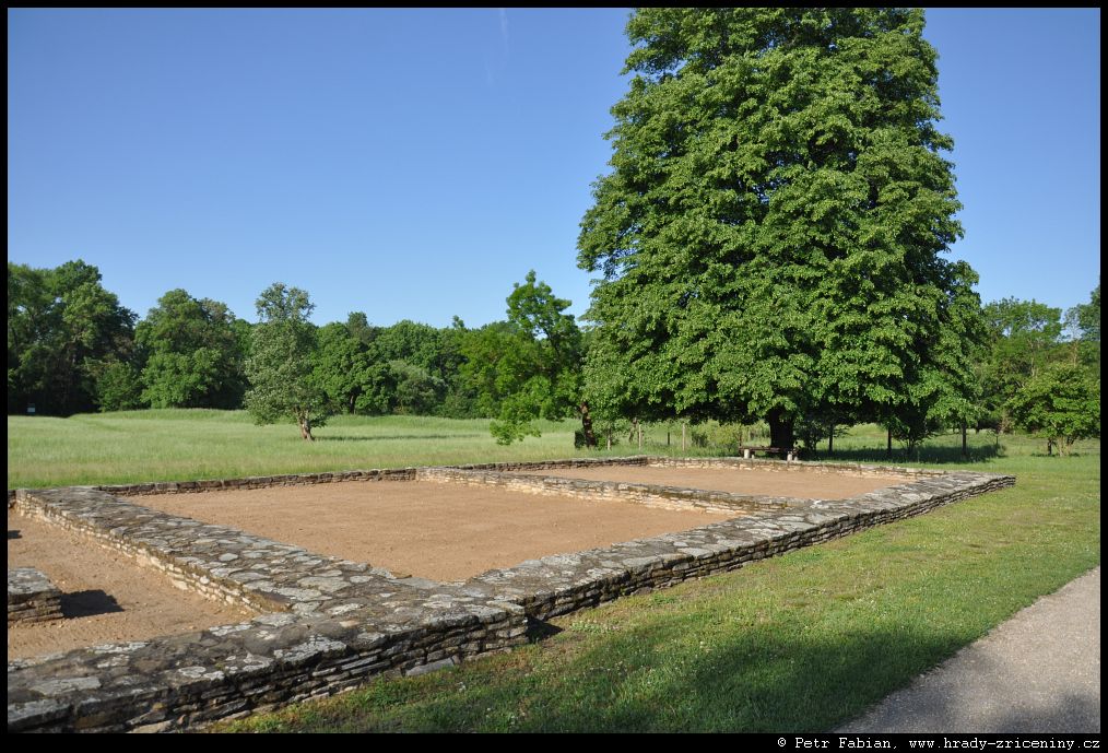 Mikulčice areál hradiště, pohled ke knížecímu paláci (2022) |
