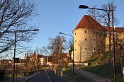 Žatec hradby jižně od Kněžské brány, v pozadí Husitská bašta (2025) |