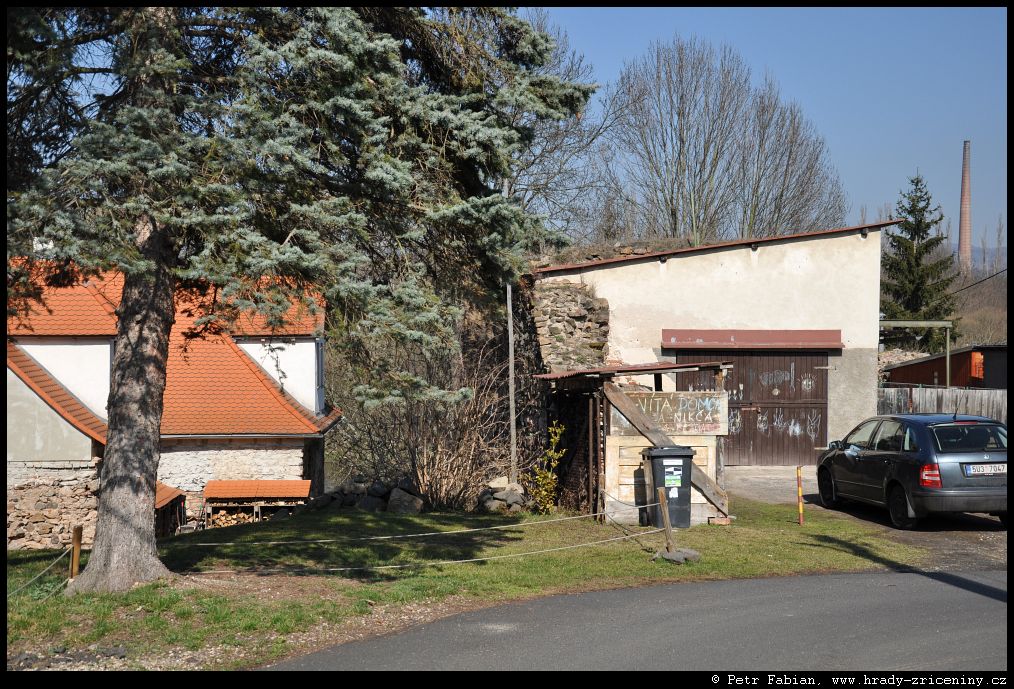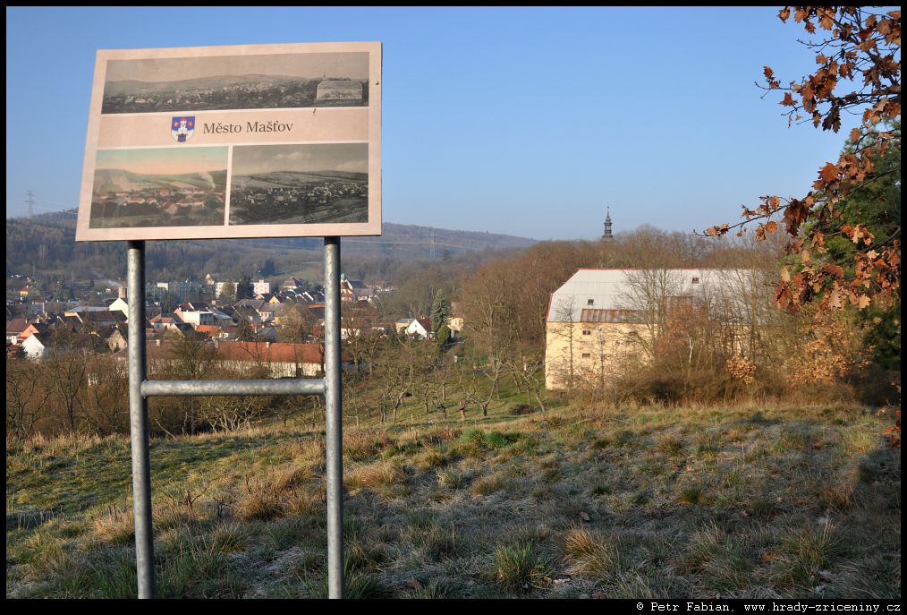 Mašťov zámecká sýpka při pohledu z návrší (2025) |