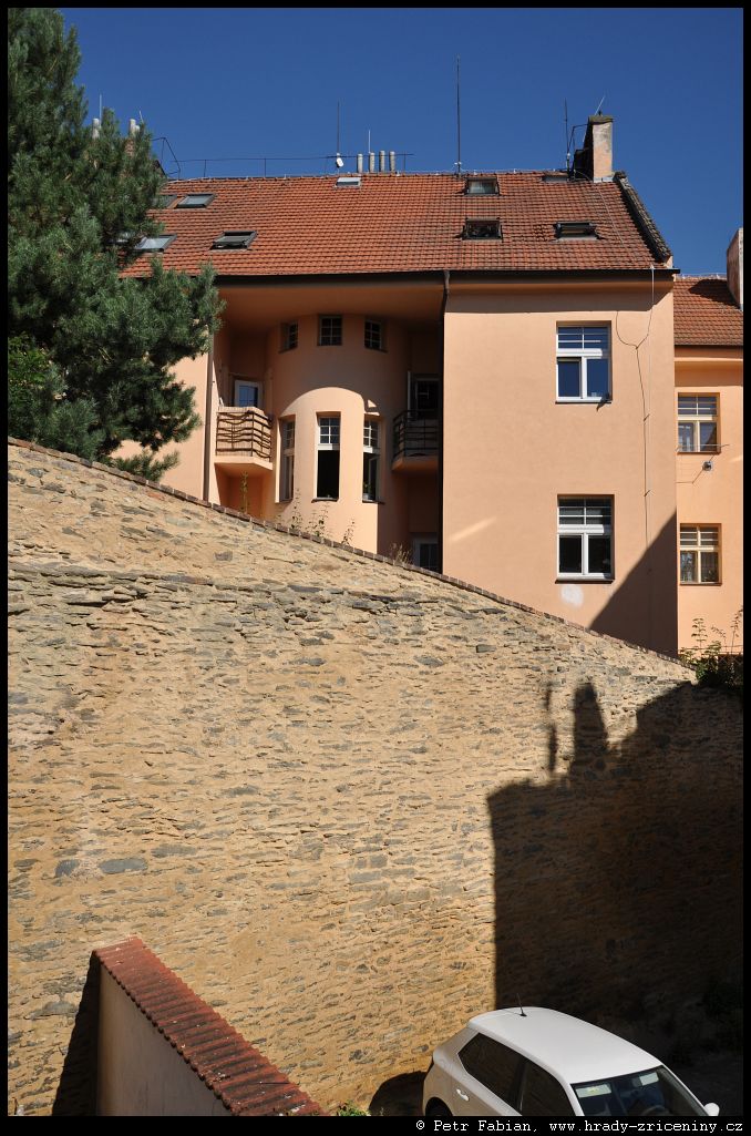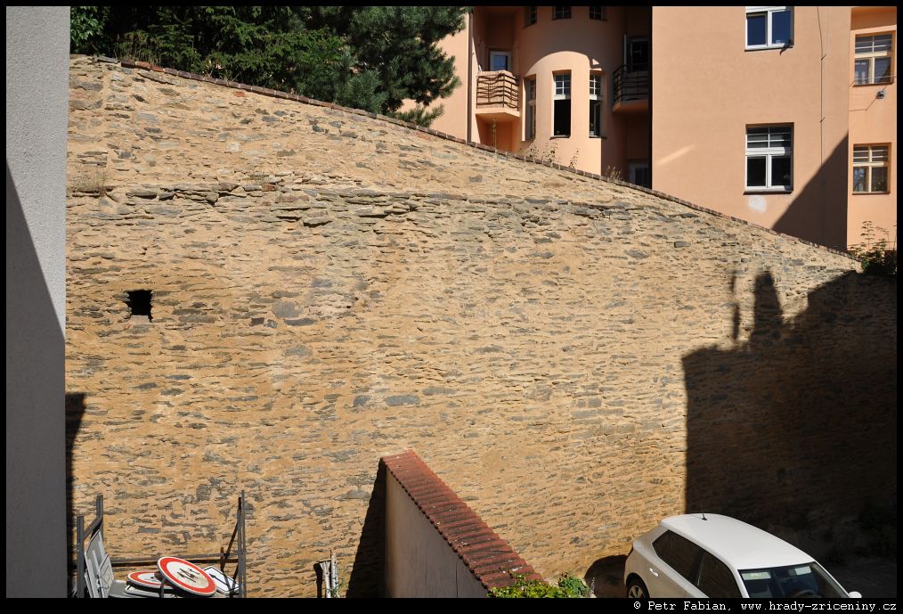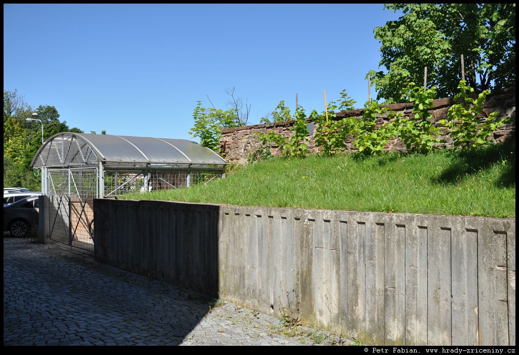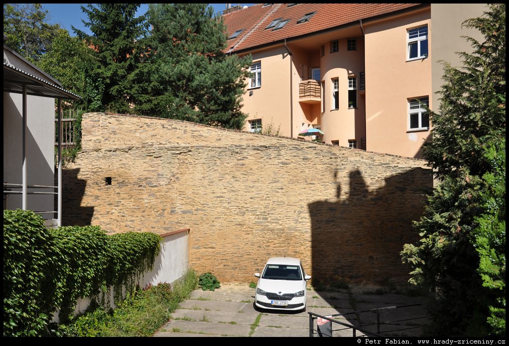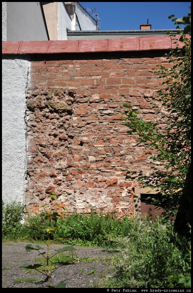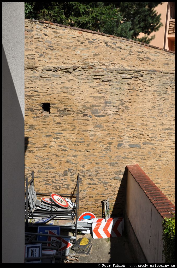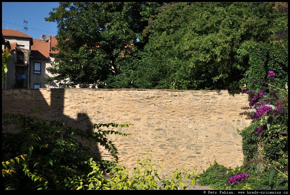 Počátky zeď v ul. Na Hradbách z dvora knihovny (2025) |