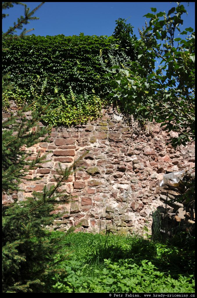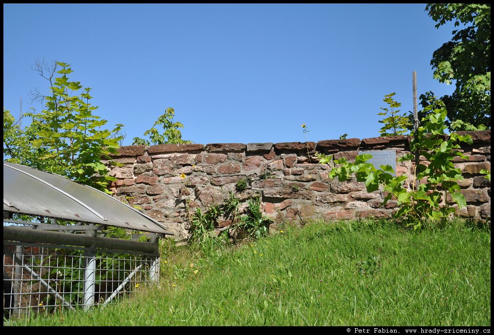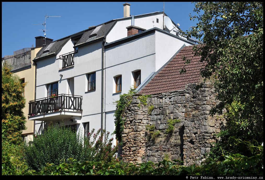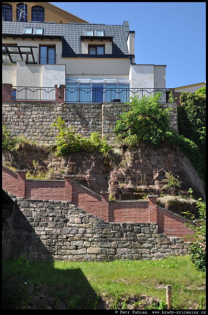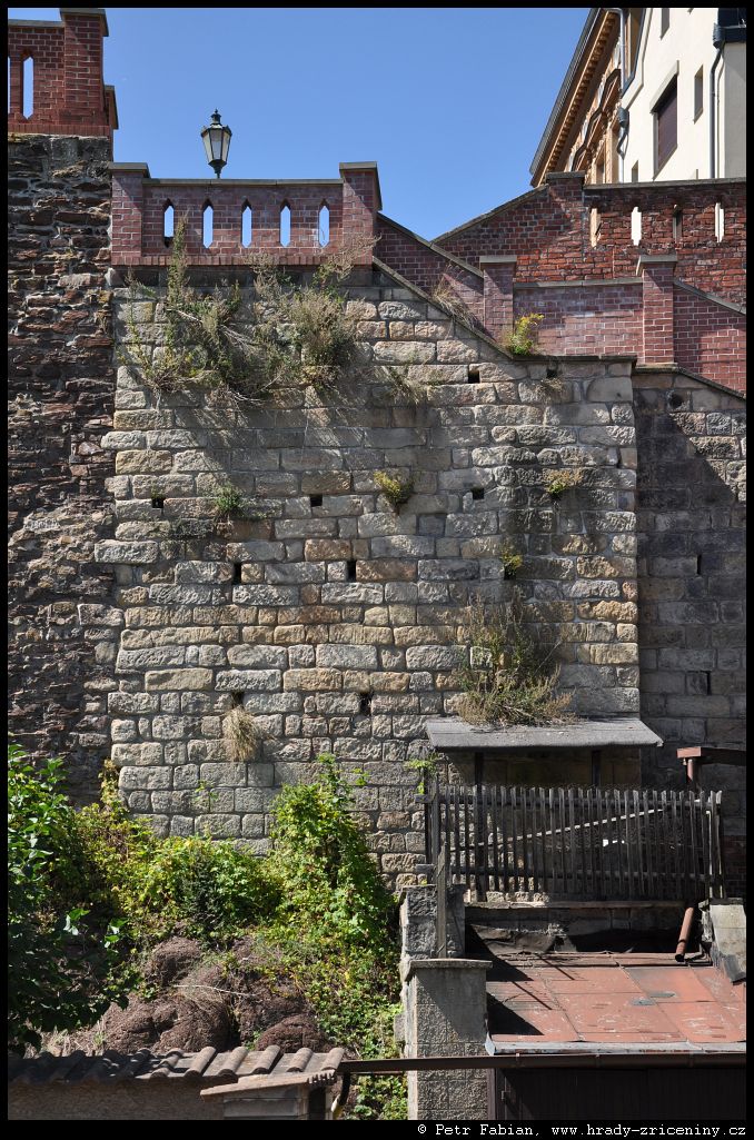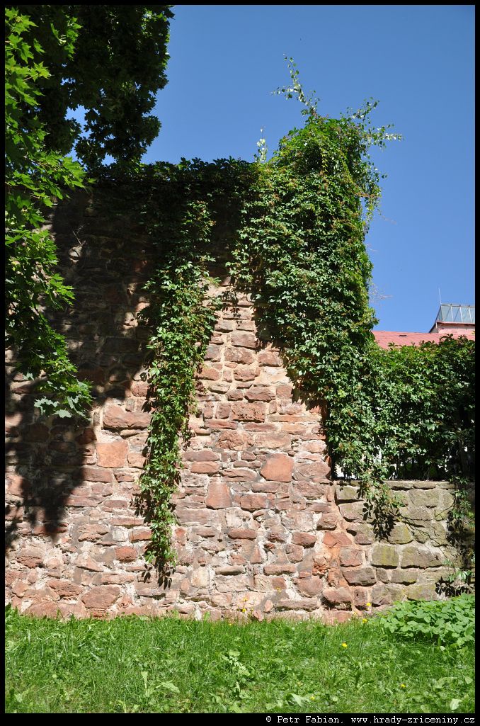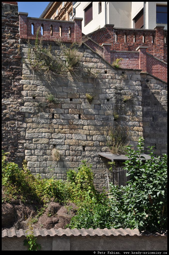 Počátky zeď v ul. Na Hradbách z dvora knihovny (2025) |