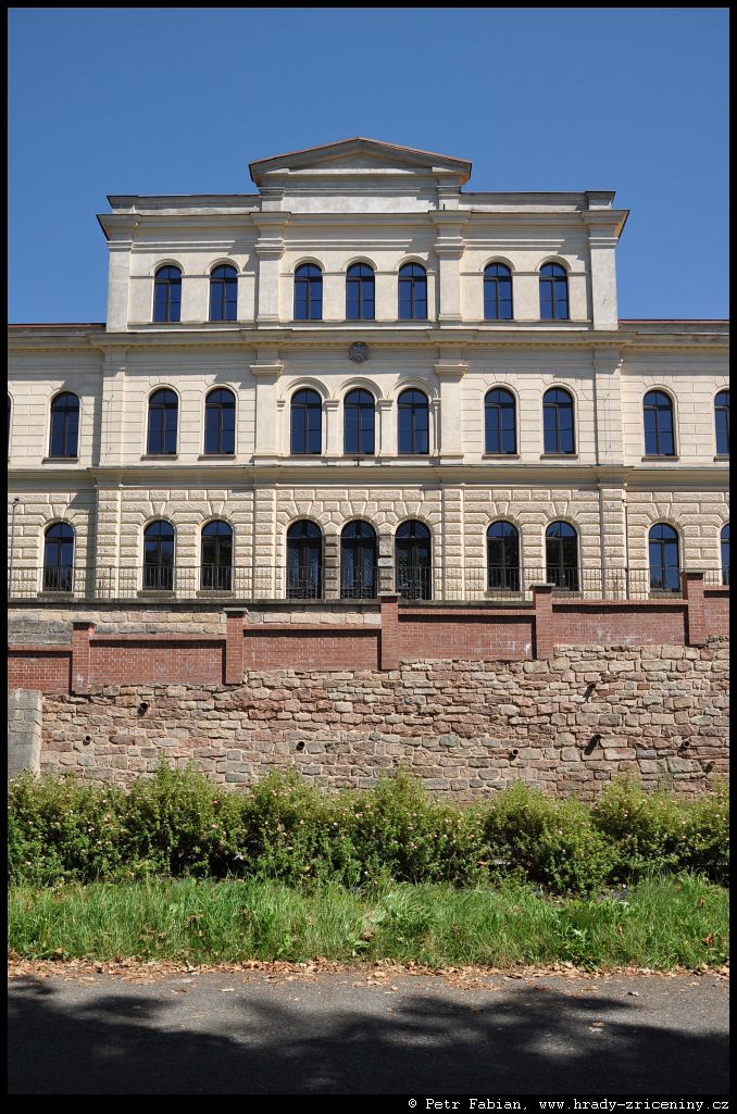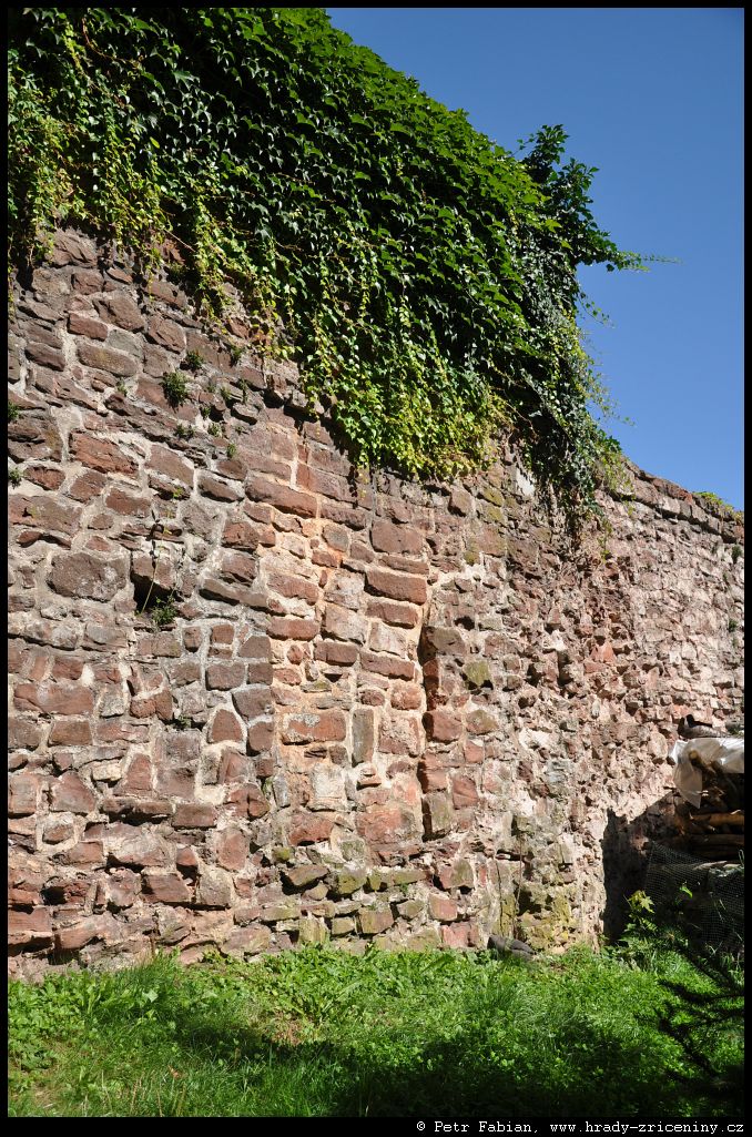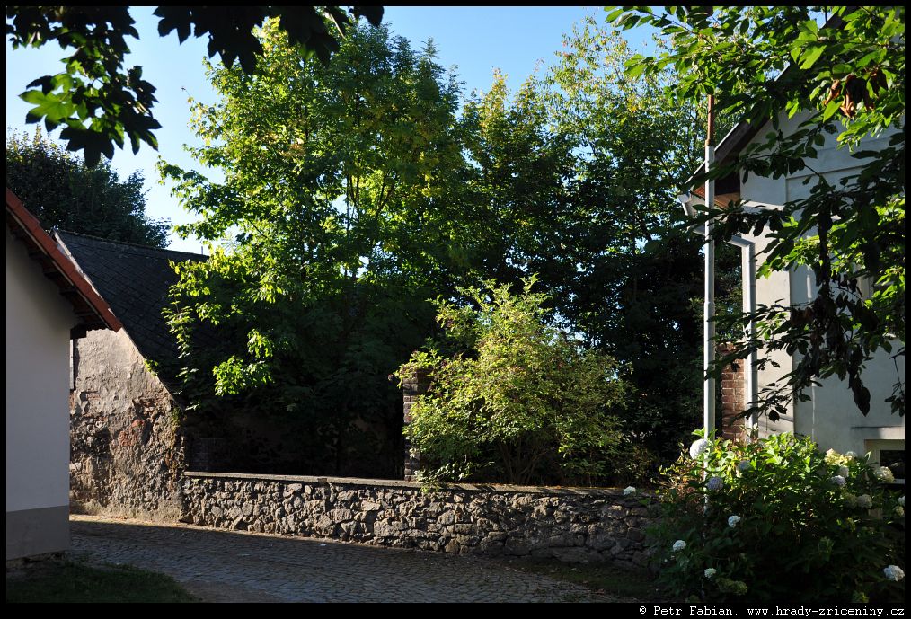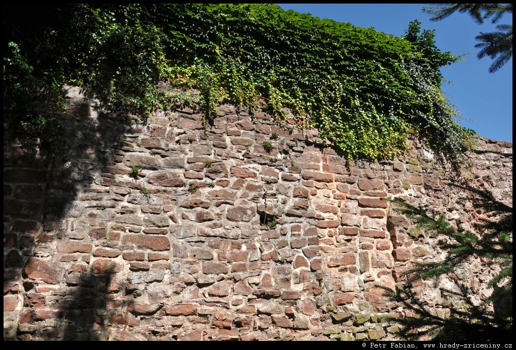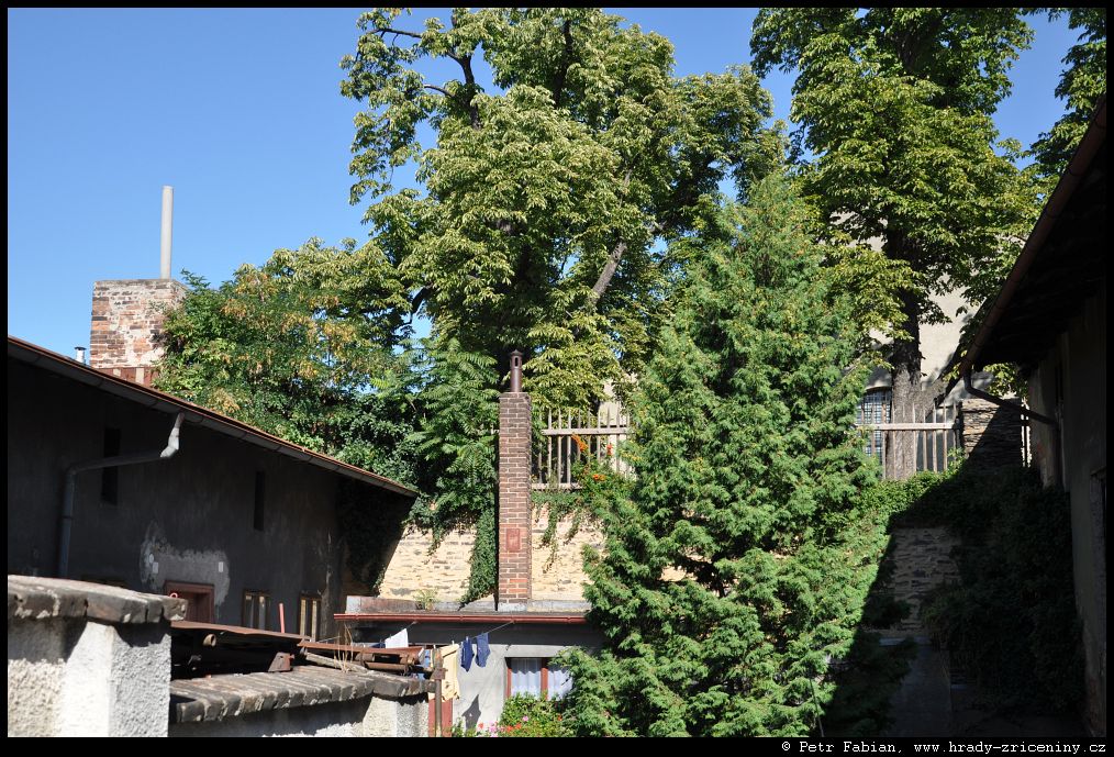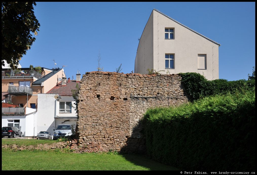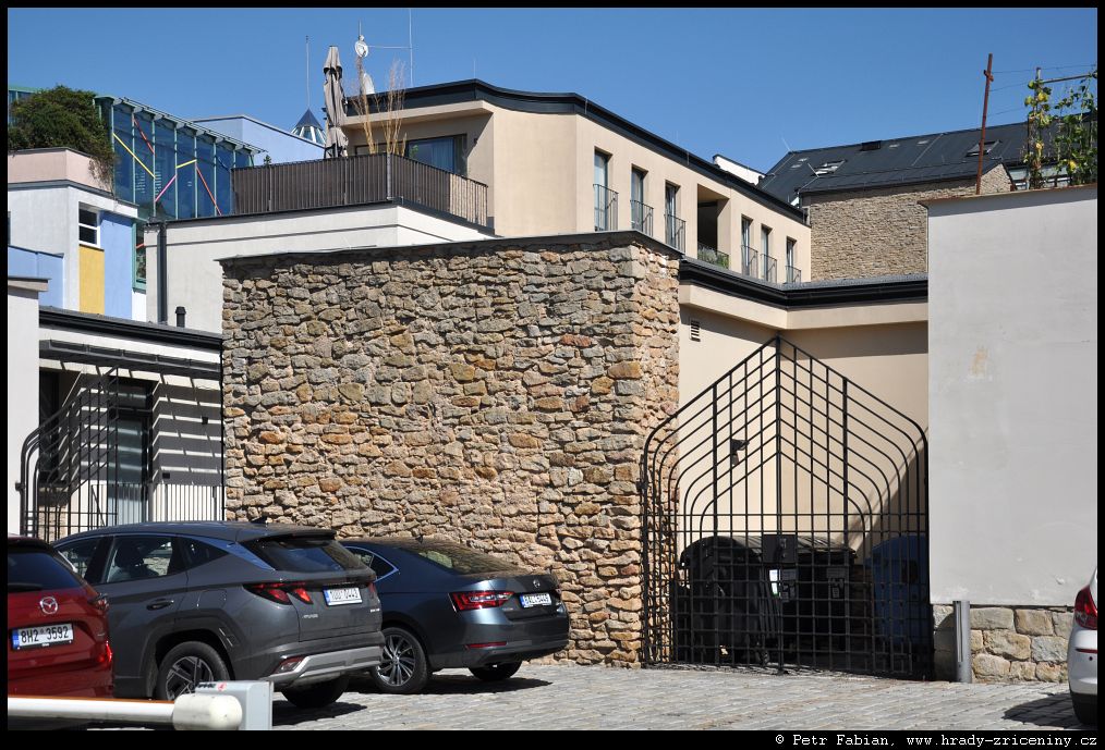 Počátky zeď v ul. Na Hradbách z dvora knihovny (2025) |