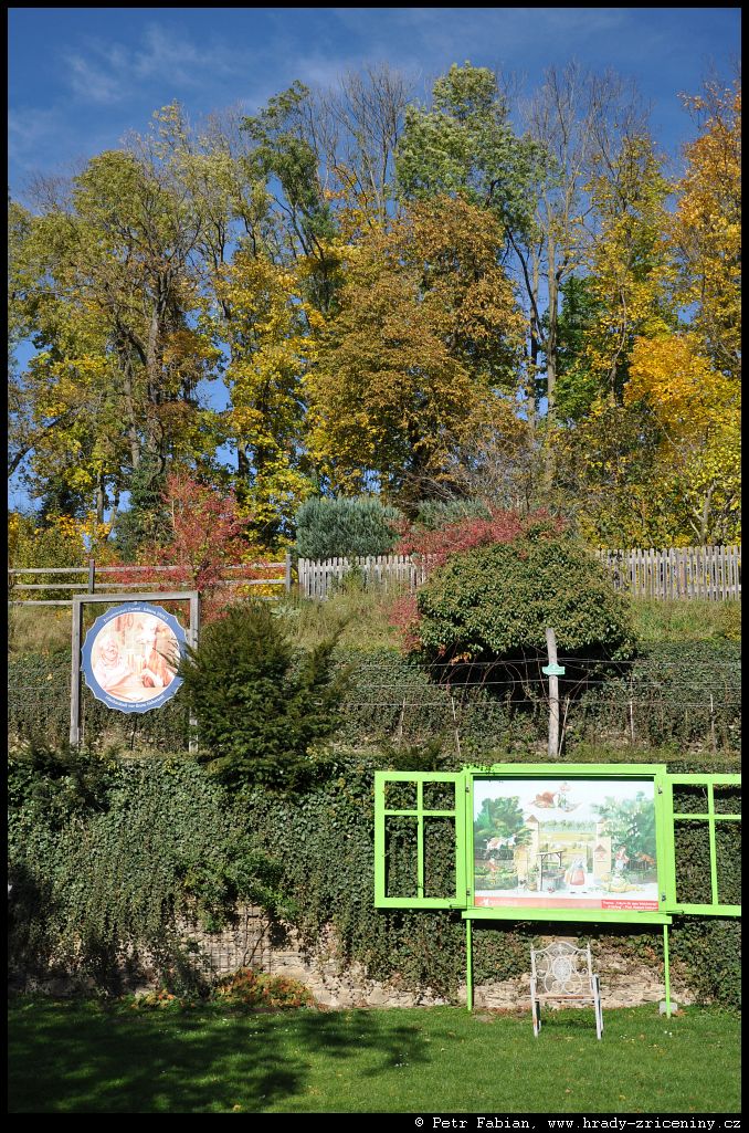 Brunn am Walde – zahrada kuriozit, v pozadí zámek