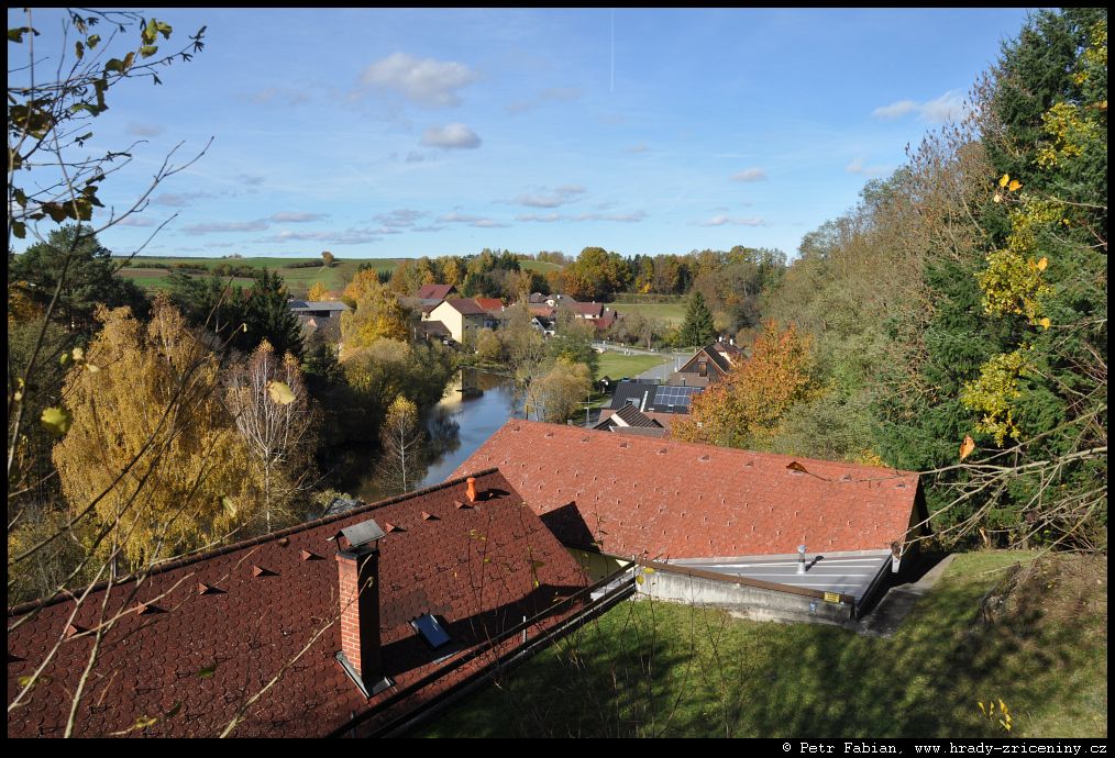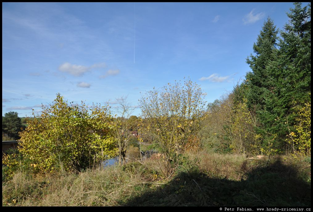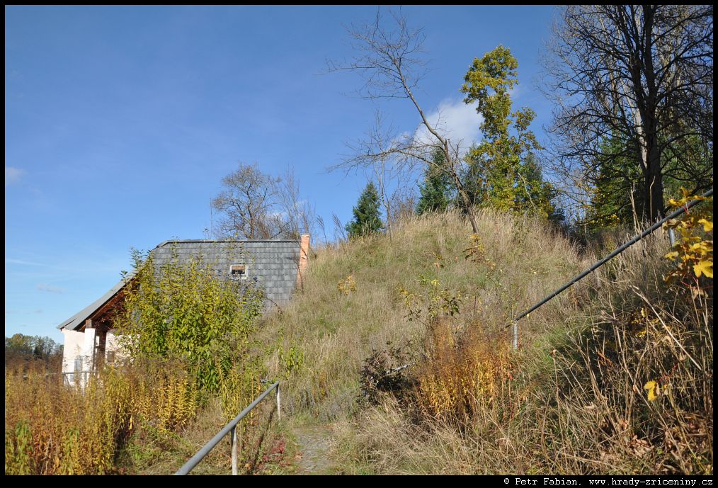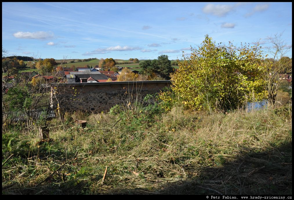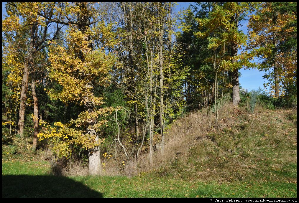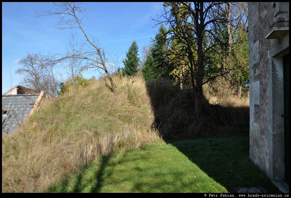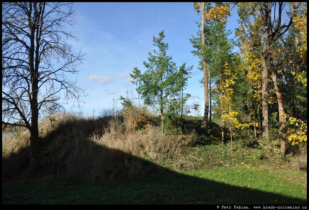 Vestenötting – pozůstatek valu, vlevo hradní jádro