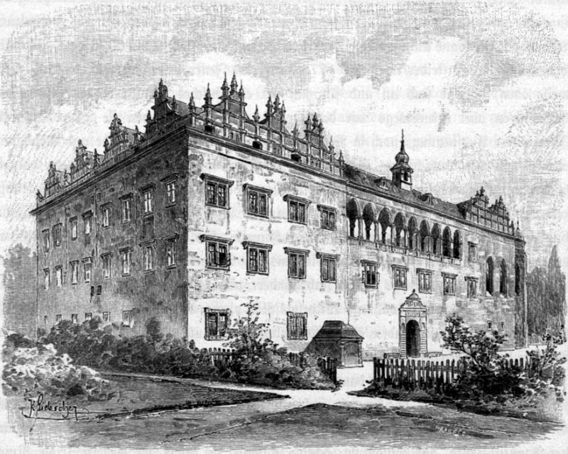 Zlenice dobová rytina s vyobrazením hradu od K. Liebschera |