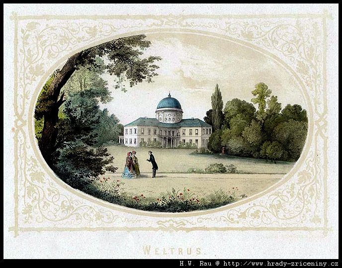 Veltrusy litografie H. W. Rau (1852) |