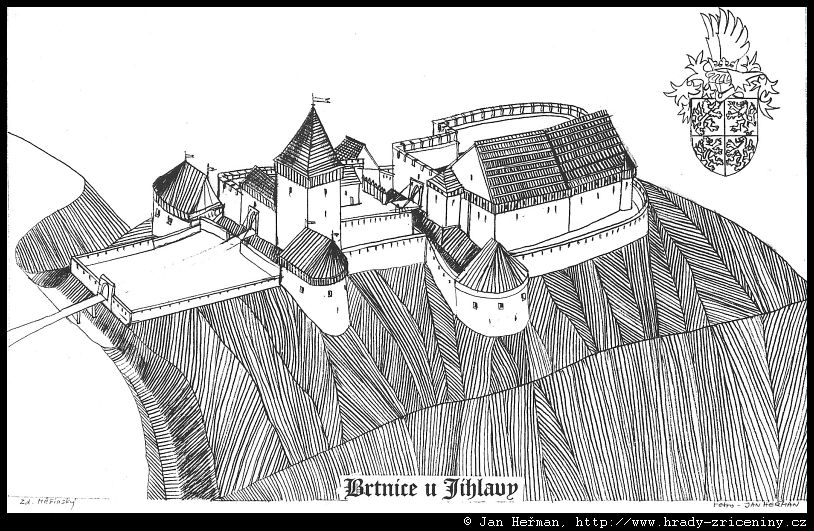 Brtnice – kresby Jana Heřmana podle rekonstrukcí