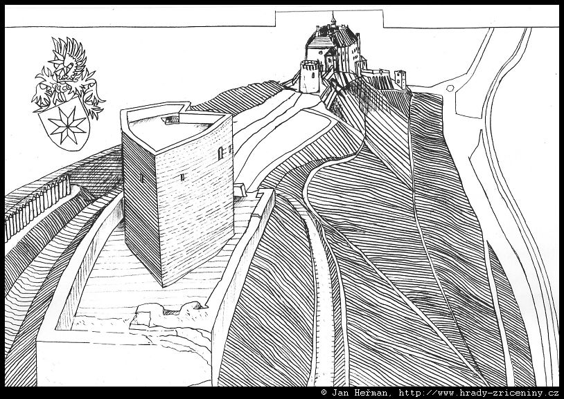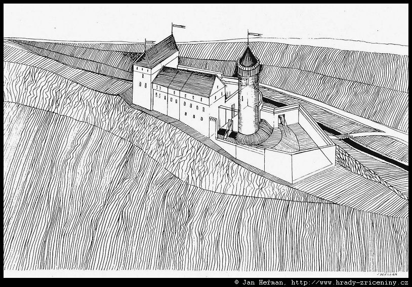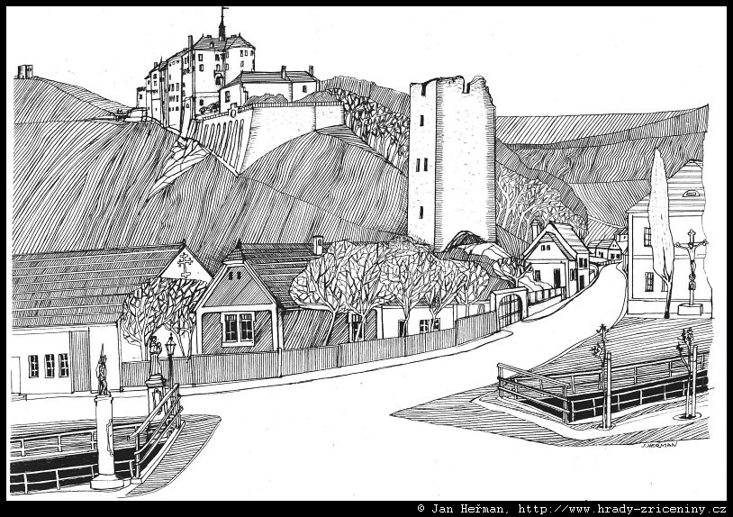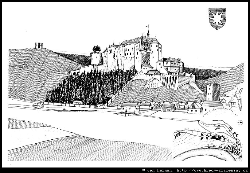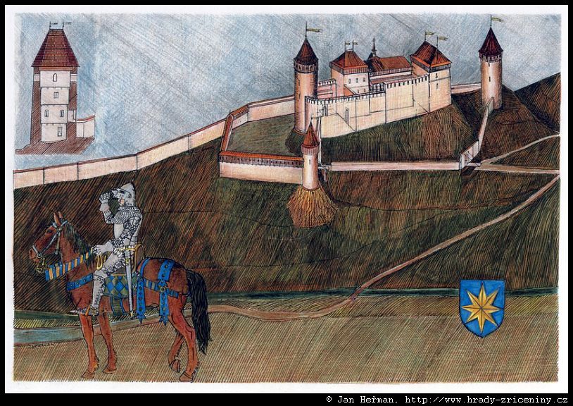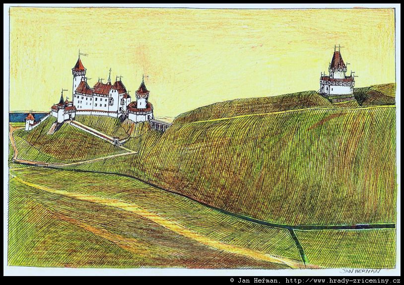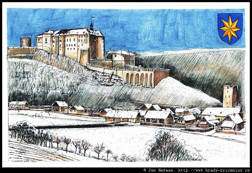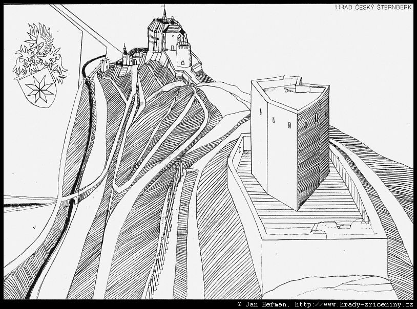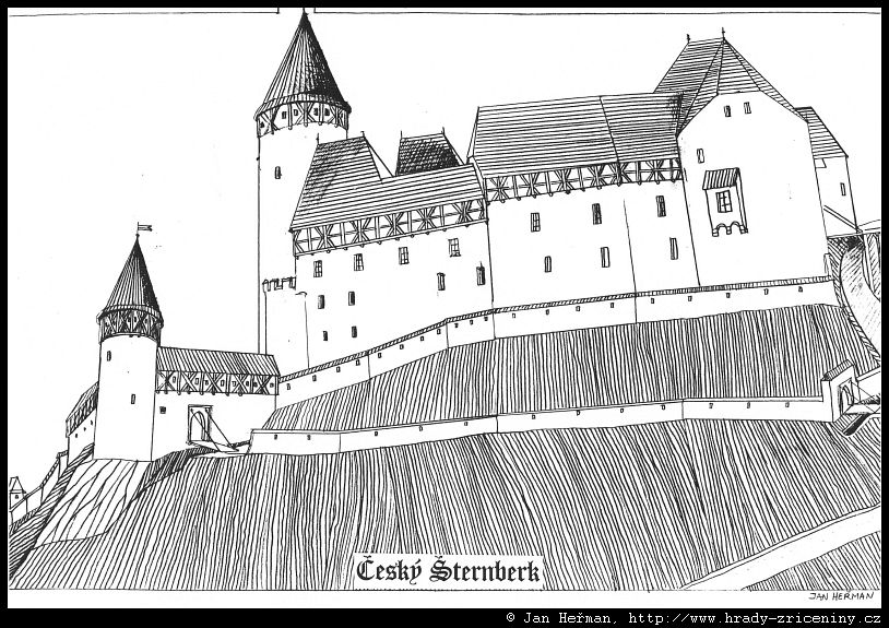 Český Šternberk kresby Jana Heřmana podle rekonstrukcí