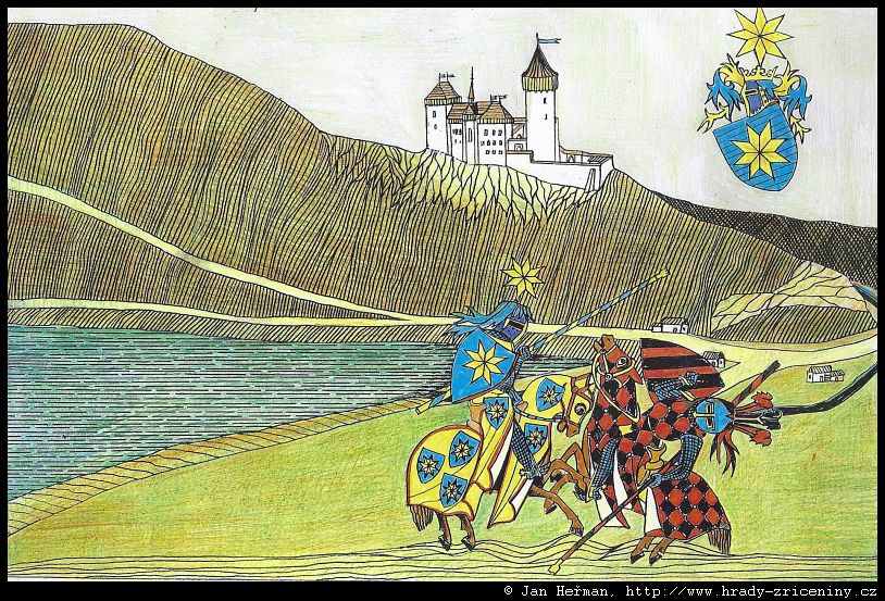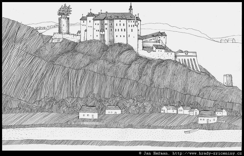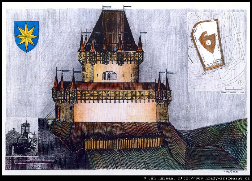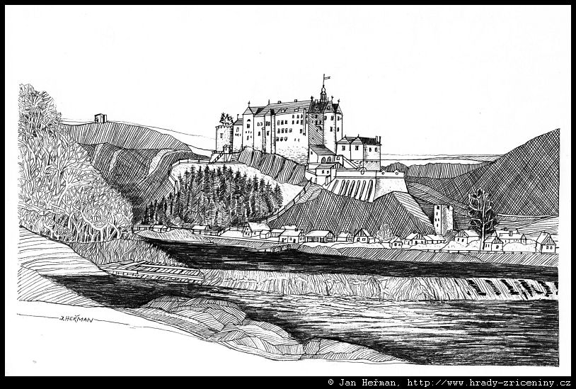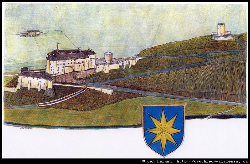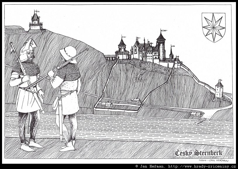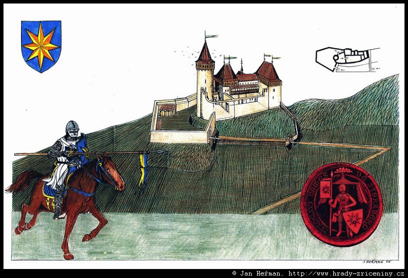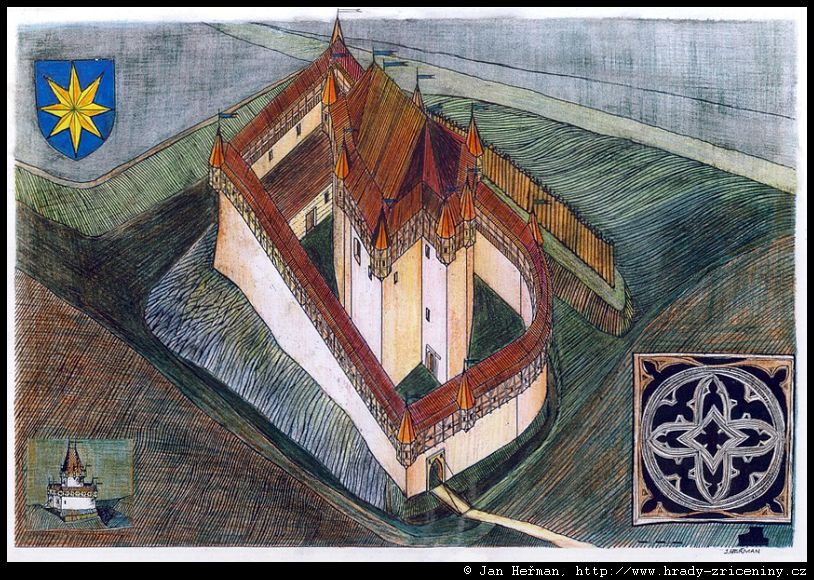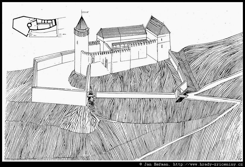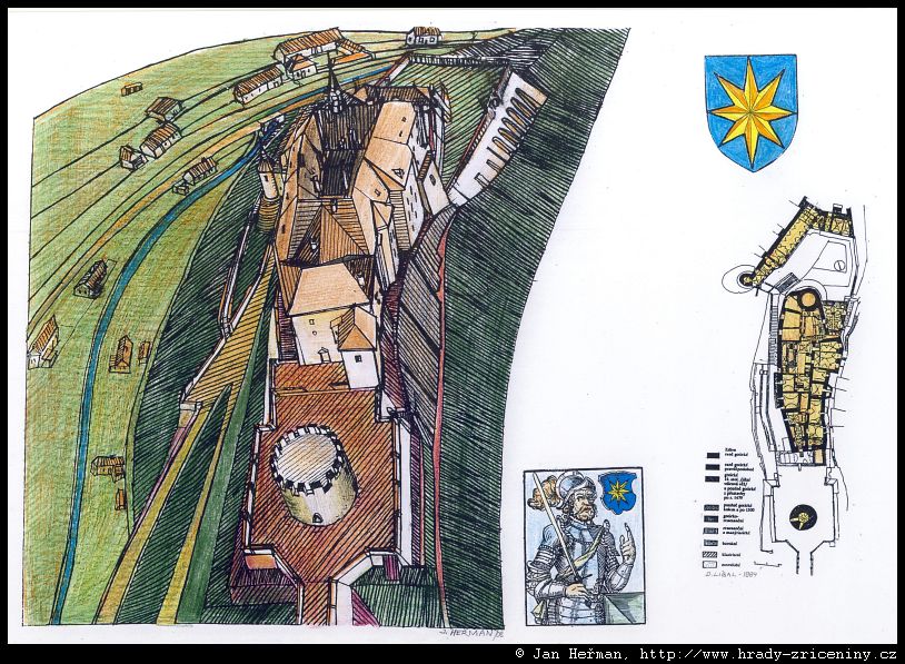 Český Šternberk kresby Jana Heřmana podle rekonstrukcí