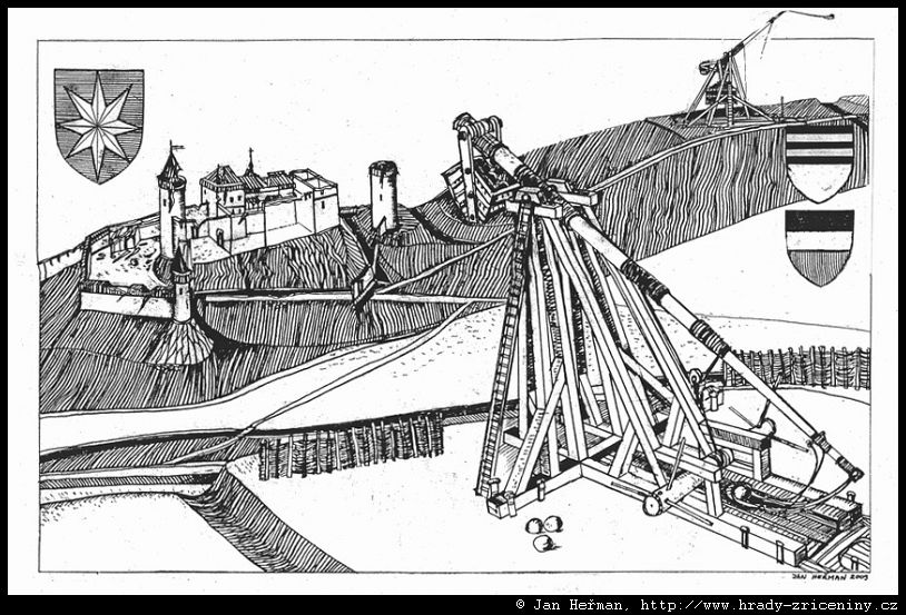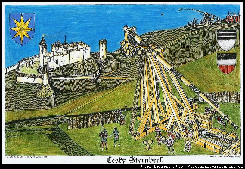 Český Šternberk obléhání r. 1467 podle J. Petráčka, NPÚ |