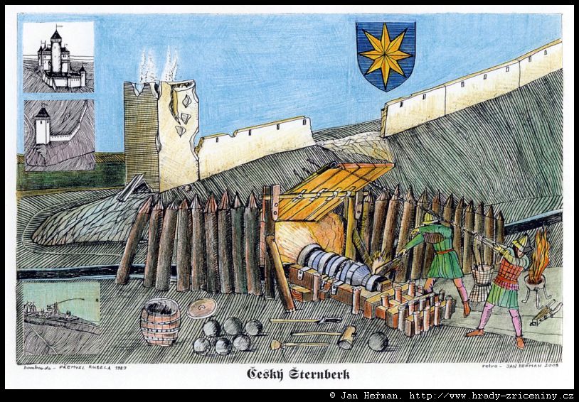 Český Šternberk obléhání r. 1467, bombarda podle P. Kubely |
