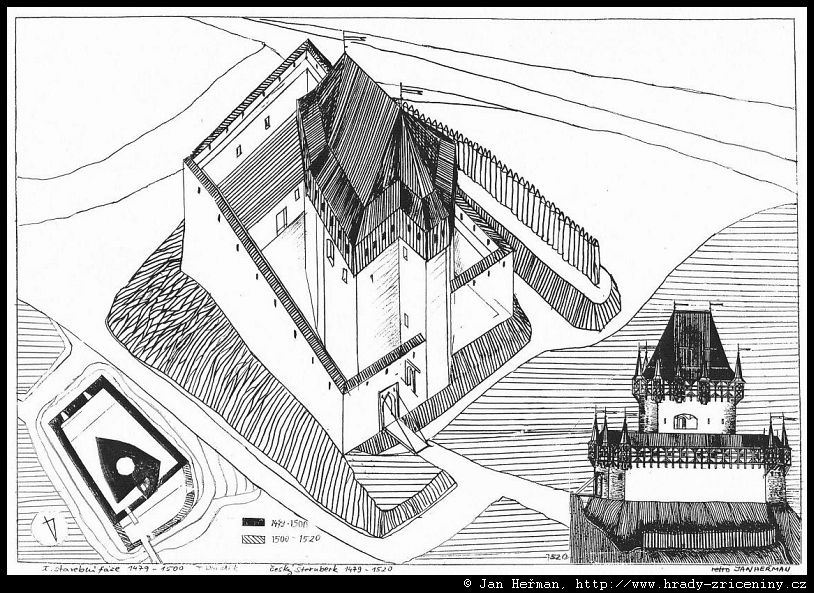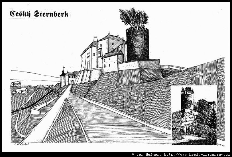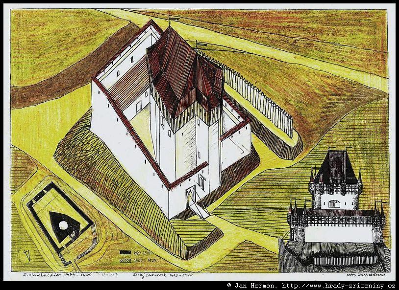 Český Šternberk kolem r. 1500 podle J. Heřmana |