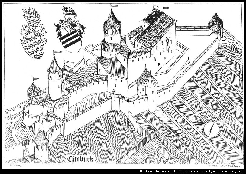 Cimburk u Koryčan – kresby Jana Heřmana podle rekonstrukcí
