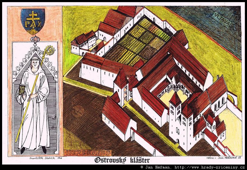 Ostrov klášter podle F. Stehlíka