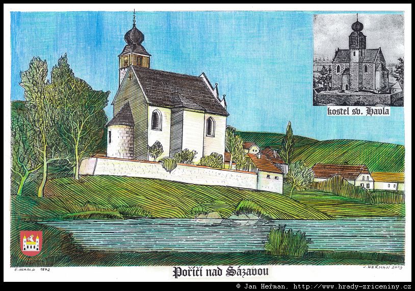 Poříčí nad Sázavou kostel sv. Havla podle E. Herolda (1872)