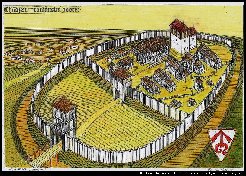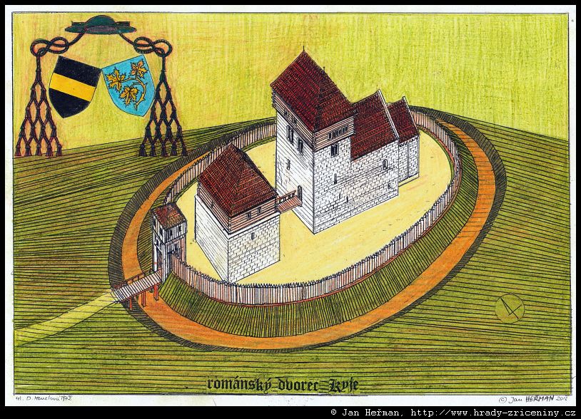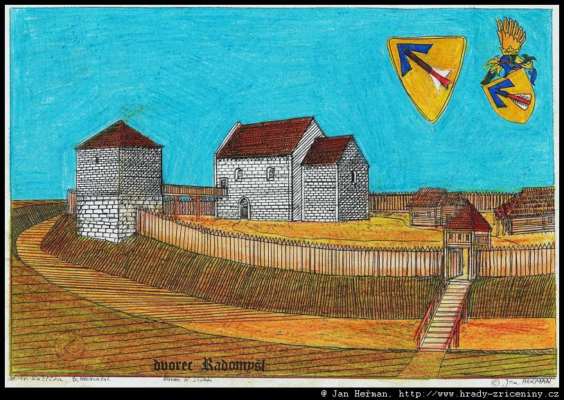Radomyšl románský dvorec ve 12. stol. podle F. Kašičky, B. Nechvátala