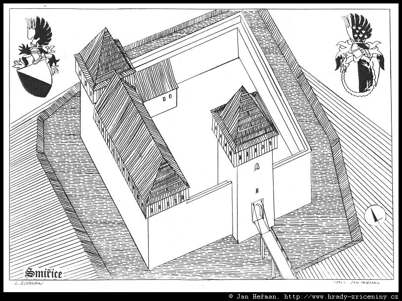 Smiřice kresby Jana Heřmana podle rekonstrukcí