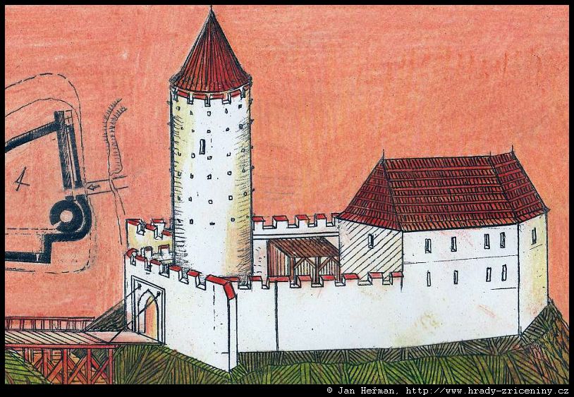 Starý Hrozňatov – kresby Jana Heřmana podle rekonstrukcí