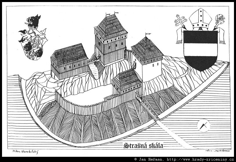 Strašná skála – kresby Jana Heřmana podle rekonstrukcí