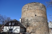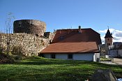 Vimperk celkový pohled, vpravo Haselburg, vlevo pod zámkem Černá brána