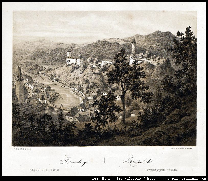 Rožmberk podle Aug. Hauna, Fr. Kaliwody (kolem 1860)